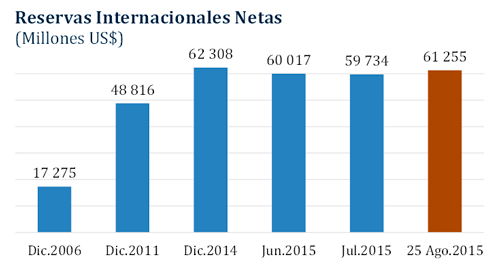 Reservas. Perú tiene casi 31 mil millones de dólares en reservas. Esta cifra es la más alta de la región. En el reporte del MEF, la luz roja está en los 15 mil millones. “Perú está sobreasegurado”, dice Morón, aunque reconoce que las reservas disminuirán este año. “Podríamos perder la mitad y aún estaríamos cerca del nivel de países como Chile o Brasil”.